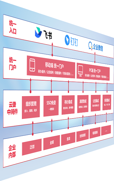 对协作平台提供支持服务,,,支持企业应用与协作平台对接,,包含组织同步、、、、消息集成、、待办集成等。。支持目前主流的协作平台:钉钉、、企微和飞书。。